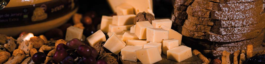 Jersey cheese, delicious organic cheese made from the milk of Jersey cows. Deliciously full of creamy flavour. Matured for at least 8 weeks in the traditional way.