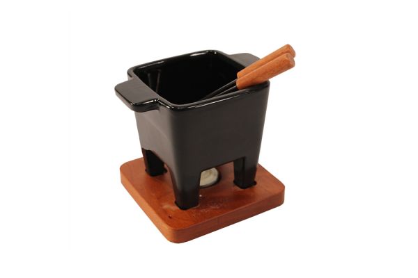 You then place the fondue pan on the base and keep the fondue warm with the burner. You can start fonduing right away using the 6 included fondue sticks. Ideal right?