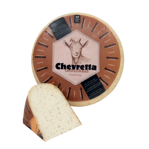 A beautiful 10-kilo whole goat cheese enriched with delicious garden herbs. Deliciously fresh and spicy flavour. Matured for at least 12 weeks in the traditional way.