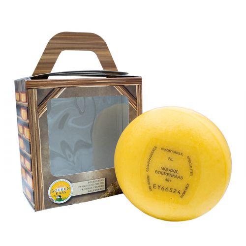 This compact cheese comes in a nice box, making it a perfect gift to give. Whether it is a business gift, birthday present or just a thoughtful gift, the Farmers' kilo cheese will always please. The packaging adds an extra touch of charm and makes giving this cheese even more special.
