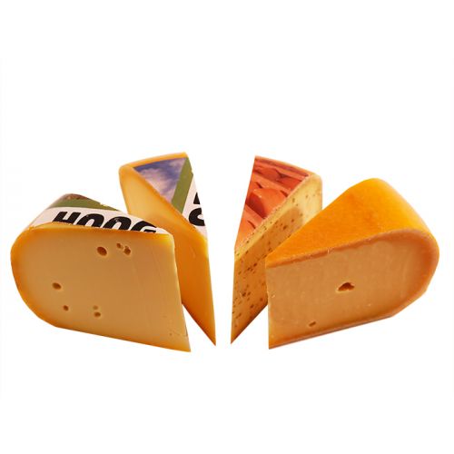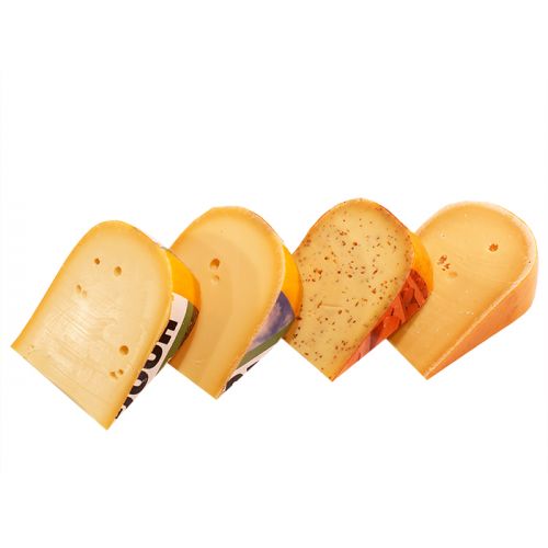 4 pieces of 500 gram cheese each from Gouda and surroundings with a nice box to present the cheeses in with drinks or to give as a gift. Suitable for enjoying on a fresh sandwich or on the go with drinks.
