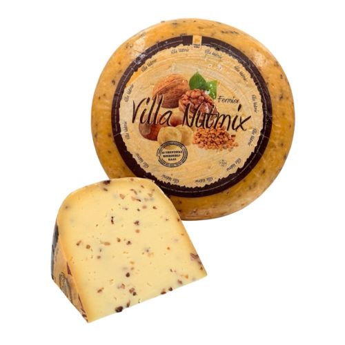 Villa Nutmix is a creamy farmhouse cheese, straight from the farm. The blend of walnut, hazelnut, and fenugreek gives it a rich, nutty flavor. Soft, smooth, and loved by everyone. Aged for 8 weeks.